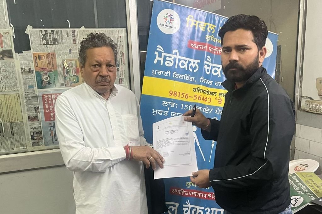 From last 3 years we are organising Disability Certificate Camps in 3 Cities of Punjab in Civil Hospitals and provided 3000 Plus Pensions along with other benefits.
